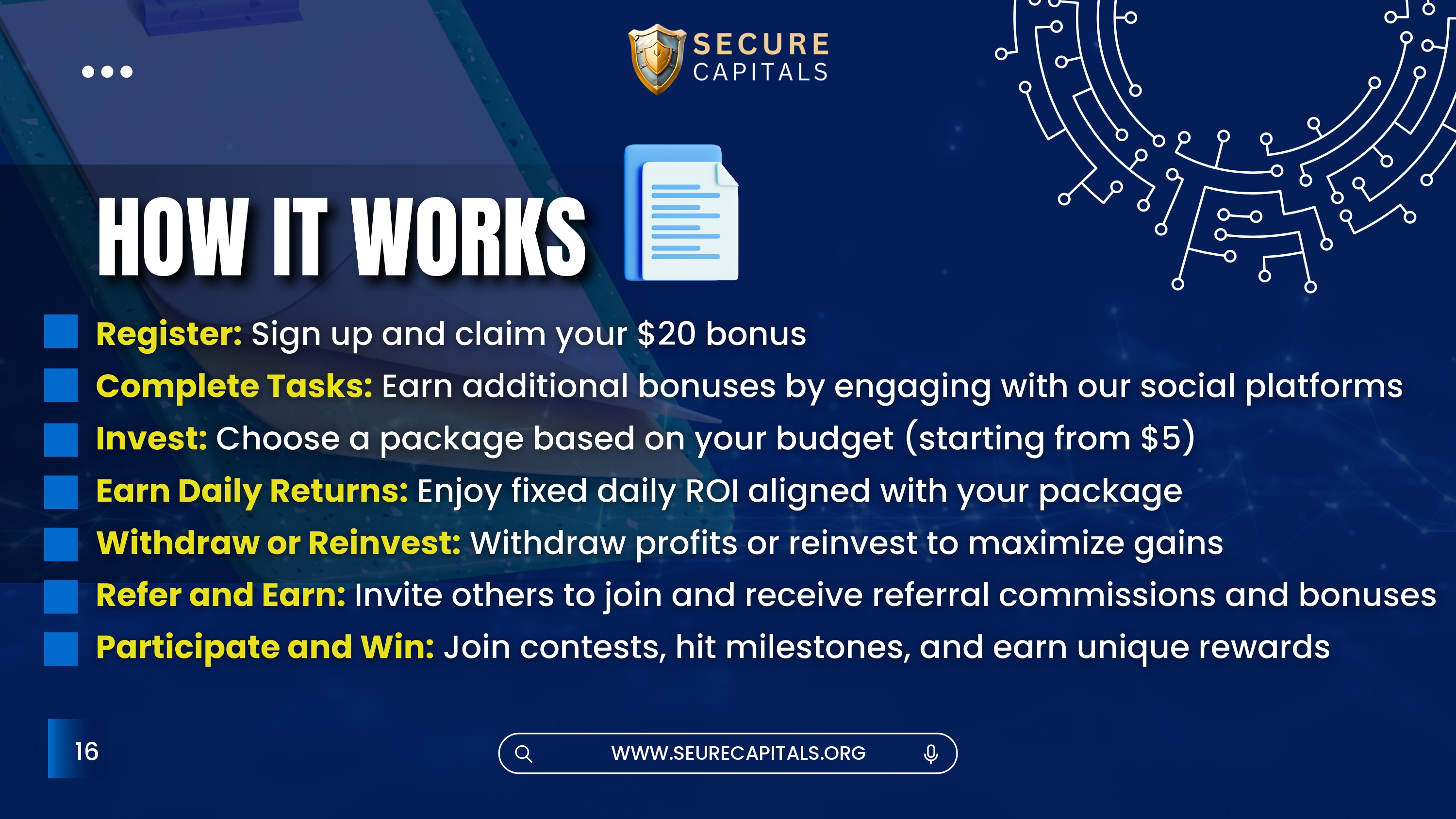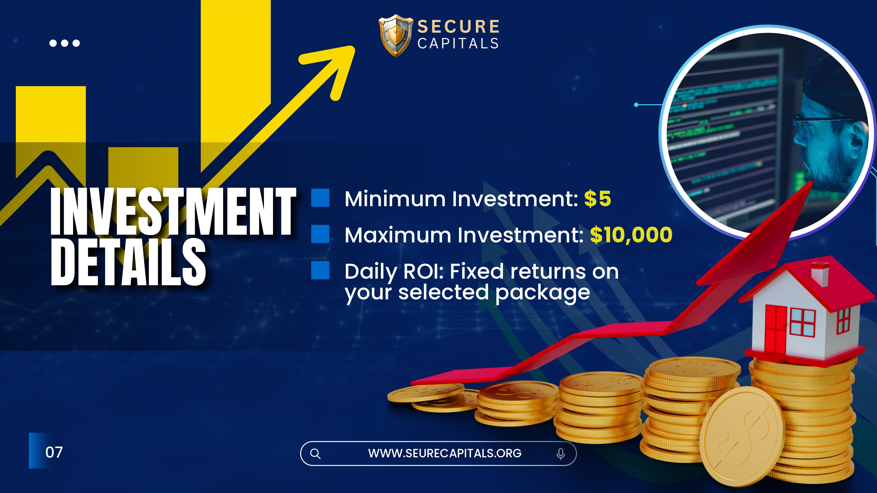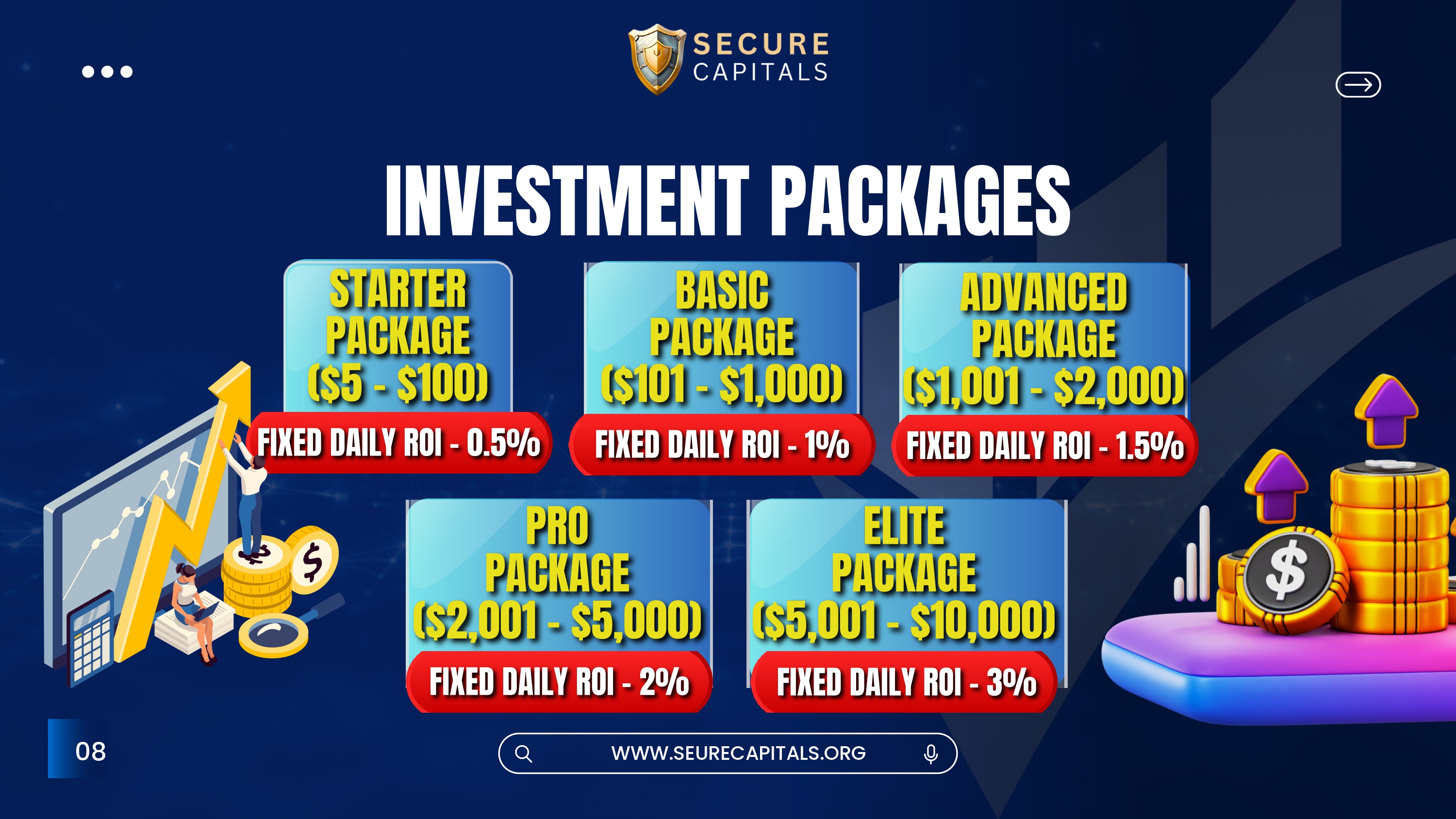 Secure Capitals is a dynamic investment platform that empowers individuals to achieve financial growth and stability through a variety of lucrative and flexible investment opportunities.